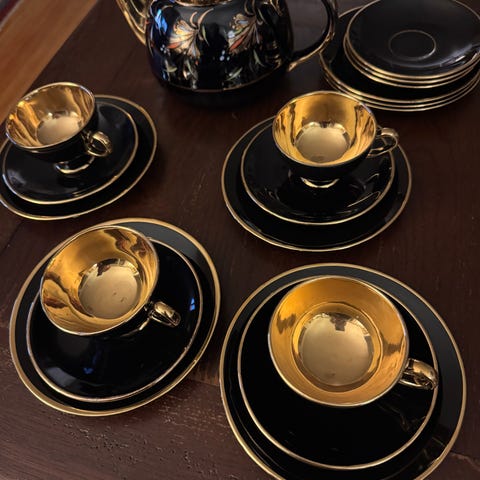Sort glasur med gullkant og gulldekor