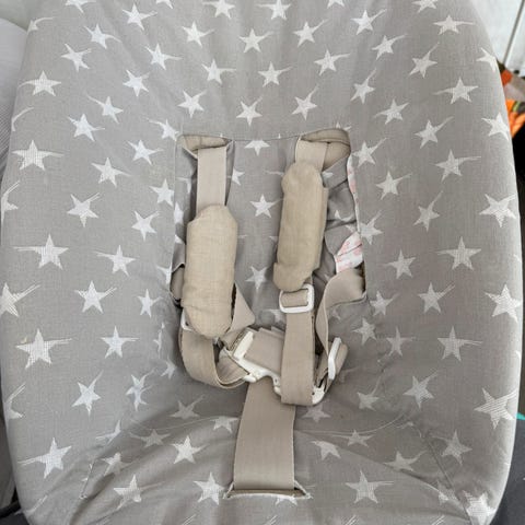 Selger Stokke Tripp Trapp babyseat/babysete med nydelig rosa trekk. Hadde det samme til storesøster og måtte kjøpe på nytt til lillebror siden dette er det fineste trekket til Stokke. Se siste bilde for riktig farge (hvit vase for referanse).