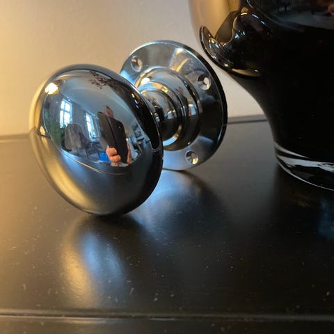 3 stk innerdører i mørkbeiset finer med sidefelt. Glasspeil med ruglete struktur (se bilde).