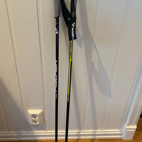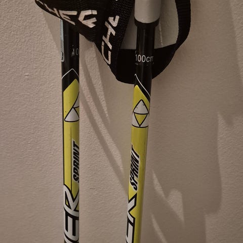 Fischer langrennspigger staver med håndremmer og spisser for bedre feste på snø. Egnet for bruk ved langrenn og skigåing.