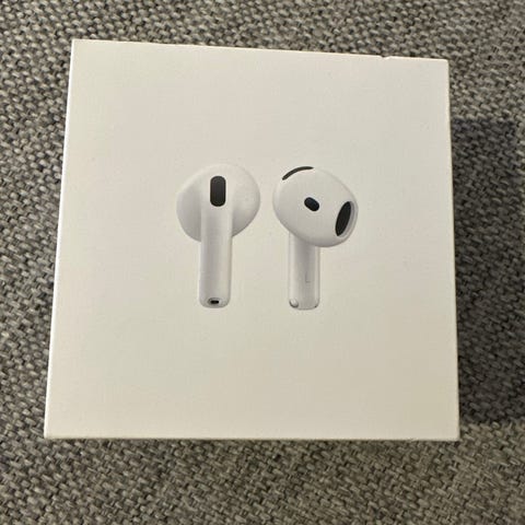 Seler air pods 4 kjøt i juli 2025 så dem er 6 månader ny pris 2249gammle det en liten skade på boxen som man ser på bilde jeg har tat godt vare på dem har ikke spelt på høyeste volym på dem