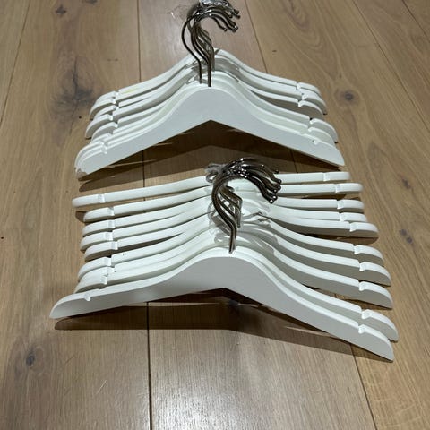 IKEA Kleshengere for barn i hvit tre. Hengere designet for barnegarderobe, laget av tre med hvit finish.
