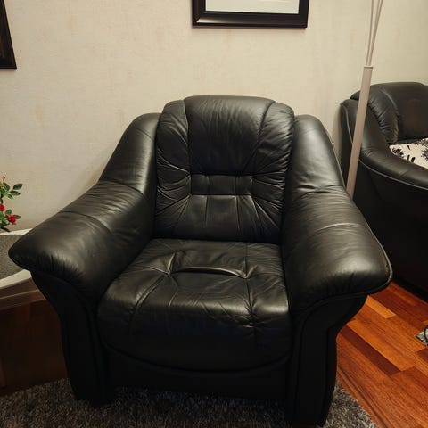 Selger to stk skinnstoler som har stått i en kjellerstue, uten å bli nevneverdig brukt. Selges samlet eller hver for seg. Må hentes.