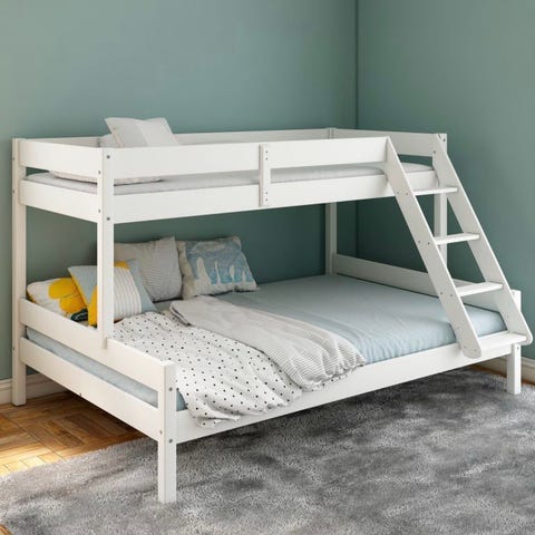 Køyesengen er demontert og klar, men noen enkelte skruer sitter fast siden jeg er ikke så flink med verktøy, og trappa er litt knust nederst på den ene siden men funker som den skal (se bilde). Ellers er dette en veldig fin køyeseng som jentene mine har likt veldig godt.
