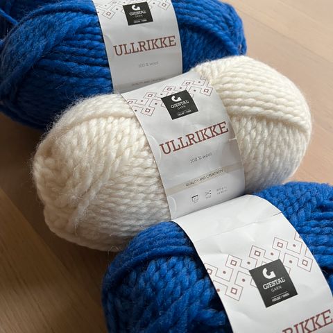 Blåne pelsullgarn . Alle har samme innfarging. Ny pris er kr 139,-pr hespe.