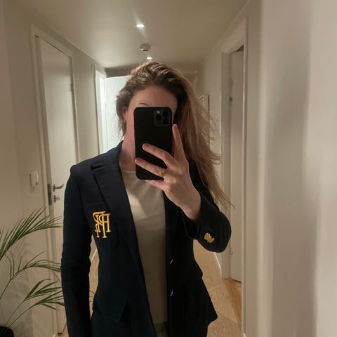 Hvit- og rosastripet blazer, kjøpt på vintagebutikk i Berlin for et par år siden. Sannsynligvis fra 80/90-tallet?