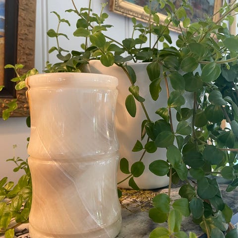 Glassvase med marmormotiv fra HM home. Vasen er lite brukt og fremstår som ny.
