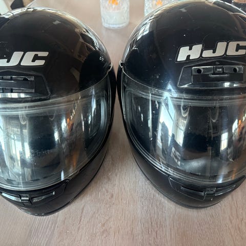 HJC IS-17 motorsykkelhjelm i matt svart farge. Hjelmen har integrert visir og ventilasjonssystem, og er designet for å gi beskyttelse ved motorsykkelkjøring. Str M