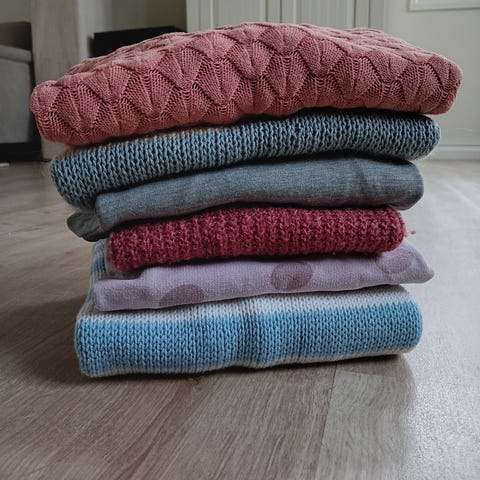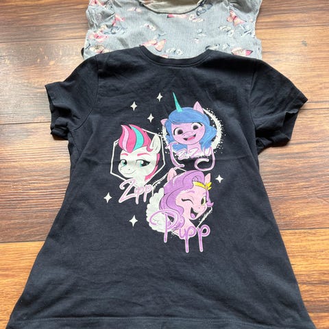9 kjoler som elsakjole, newbie kjole og paljettkjole. 4 gensere, 3 langermet, en t-skjorte, 3 strømpebukser og 3 bukser.