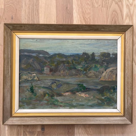 Oljemaleri på plate av Sigurd Danifer. Nydelige farger, og maleriet forandrer farge etter lyset. Gull ramme.