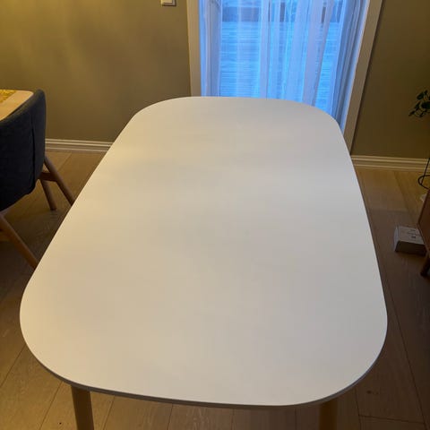 Bordet er i svært god stand og fremstår som pent brukt. Overflaten er robust, ripes ikke lett og tåler mye bruk. Et solid kvalitetsbord som passer like godt som spisebord, arbeidsbord eller møtebord.