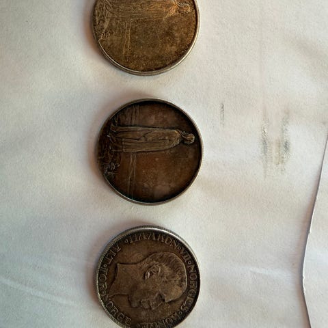 4 stk. britiske mynter «Six Pence» fra 1939, 1948, 1951 og 1960) Myntene har portretter av kong George VI og dronning Elizabeth II.