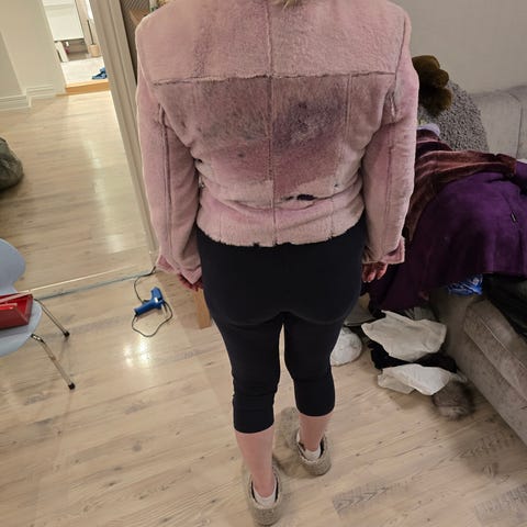 Nydelig jakke med pels innvendig på ermet og hetten. Rev og kanin.