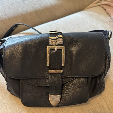Vesken er pent brukt. Sidelommen som er inni har løsnet i sømmen på sidene, men det kan enkelt fikses om man ønsker det.