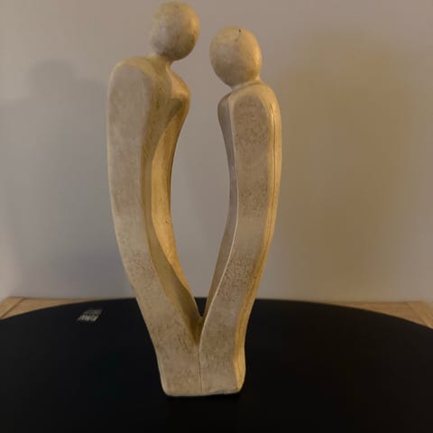 To vakre sorte figurer av mann og kvinne. God stand. Tror det er gips, som er belagt med sort.
