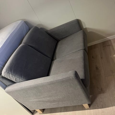 Utrolig behagelig og fin sofa i cognac mikrofiberstoff. Den er velholdt og viser lite tegb til bruk. Den var bittelitt for stor for vår stue så vi selger den. Sitteputene er faste, mens ryggputene er løs.