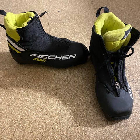 Fischer Comfort langrennsko i størrelse EU 36. Skoene er svart med gule detaljer og har glidelås foran. Egnet for langrenn og laget med komfort i fokus.