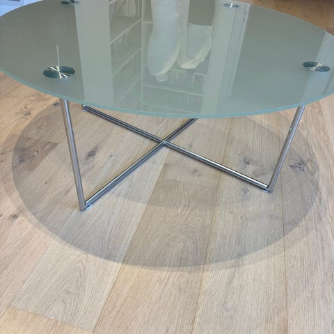 Salongbord i glass og metall selges rimeligt