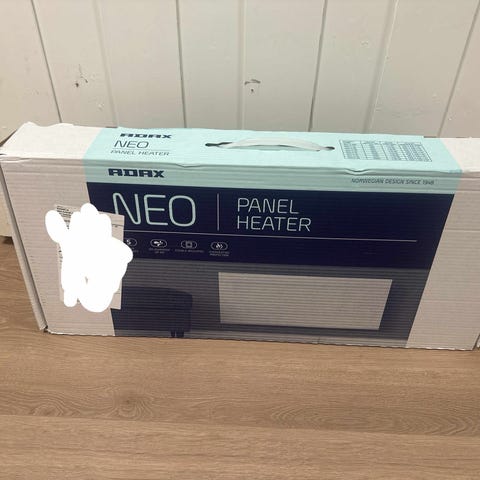 Beha panelovn, er på 1000 watt, følger med veggfeste og støpsel.