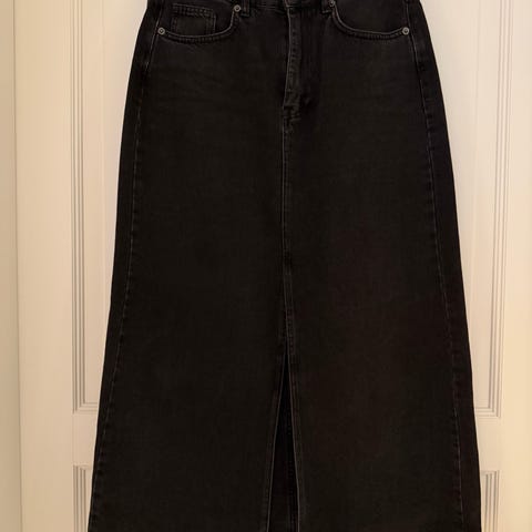 Pent og tidløst denimskjørt fra Co’Couture i klassisk blå farge. Skjørtet har splitt foran.