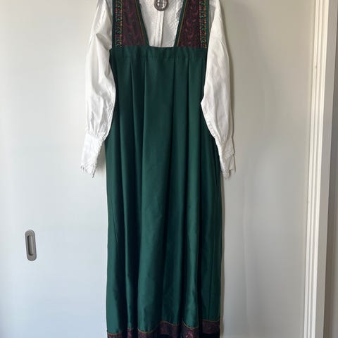 Drakten leies ut med blått forkle, to skjorter (en original blå og en hvit), belte med sølvspenne, to søljer, veske, ring, øredobber og silkesjal.