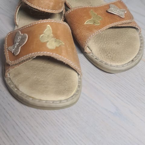 Pom Pom sandaler for jente i størrelse 30. Sandalene har justerbare borrelåsfester og er laget i lyst materiale. Egnet som sommersko for barn. Se mine andre Finn-annonser også.