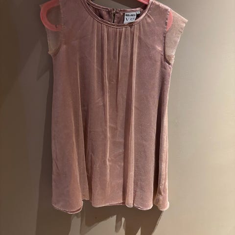 H&M Frozen kjole i størrelse 116 for jenter. Kjolen er lilla og laget av polyester. Den har kort erme og glidelås bak. Designet inkluderer motiv fra Frozen på skjørtedelen og en dekorativ sløyfe på midjen.
