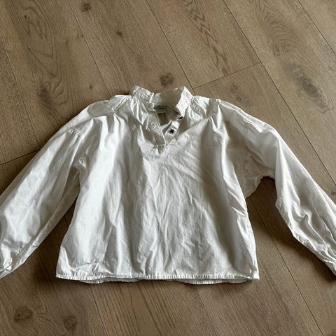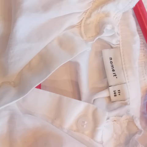 Pent brukt bunadskjorte til barn str 146 i 100% bomull. Alle knapper inntakt. Nyvasket, trenger en stryk. Kan sendes.