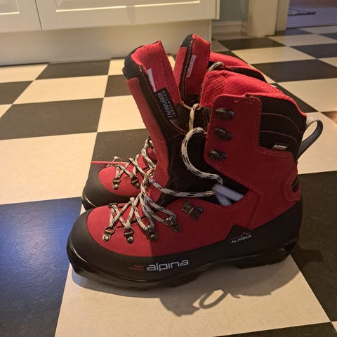 Fine, lite brukte ullforede Alpina Blaze skisko str. 47 for Rottefella 75 mm.