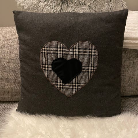 IKEA puter i mørk grått stoff. Putetrekket har en myk tekstur og er firkantet i formen. Egnet for bruk som pyntepute i hjemmet.