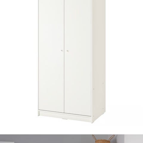 Selger et romslig garderobeskap som jeg mener er fra IKEA. Sto her da vi flytta inn. Det er noen hull fra skruer på venstre side av skapet. Det hang det før to korte stenger til å henge opp klær. De kan kjøper få med seg. Henting snarest, helst før fredag 23. januar.