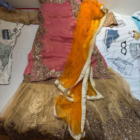 Turn heads at any celebration with this gorgeous aqua green heavy dress featuring beautiful gold embroidery. Comes with matching dupatta and bottom.