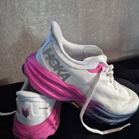 Selger et par pent brukte Hoka Tor Ultra Lo Goretex med vibramsåle. Er brukt en god del, men dessverre sitter de ikke riktig på min fot. Er true to size. Farge hvit/nimbus cloud. Har vasket de med sitronsåpe, men får de ikke hvitere enn som avbildet. Ellers i god stand💫 Ny pris 2999,-