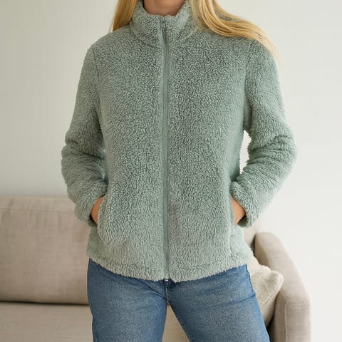 Består av to deler: en langermet topp med søtt rutemønster i pastellfarger, og en ensfarget rosa bukse i mykt fleece-stoff.