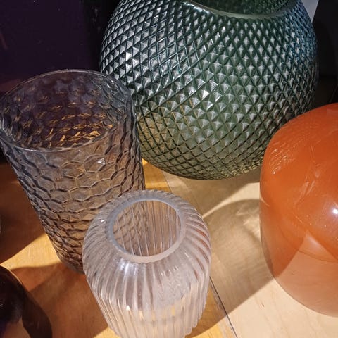 Glassvase/beholder som kan brukes til dekorasjoner