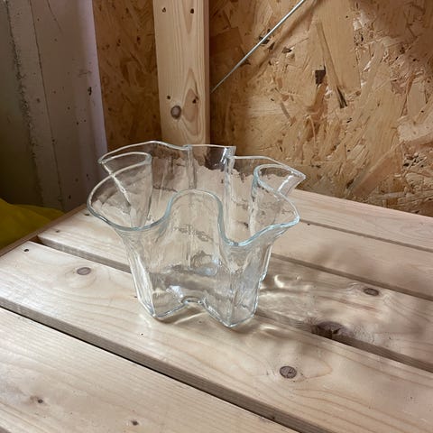 Pent brukt beholder/vase som kan brukes til å lage fine dekorasjoner i glass.