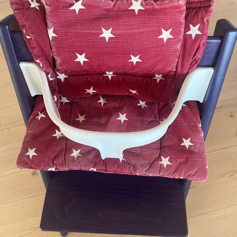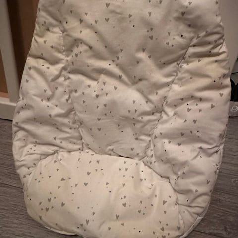 Pute til baby som passer til Stokkes Tripp Trapp stol. Pent brukt. Søtt mønster med små hjerter på.