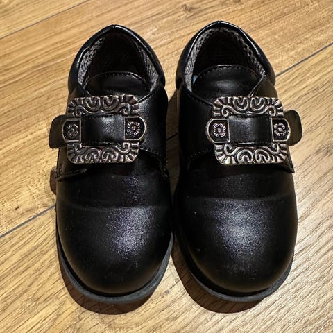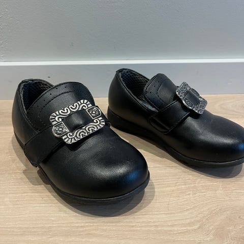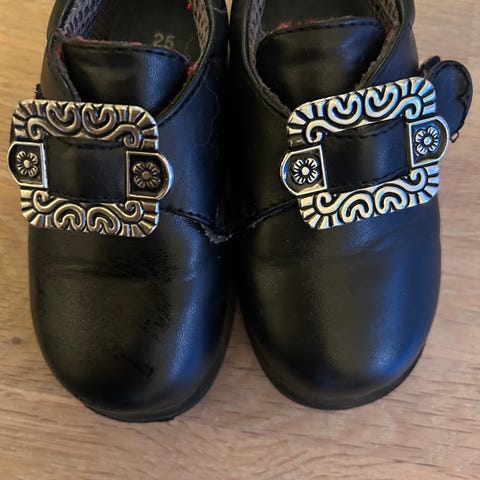Småtroll bunadsko i størrelse 26. Kun brukt en gang. Skoene er svarte med dekorative spenner foran.