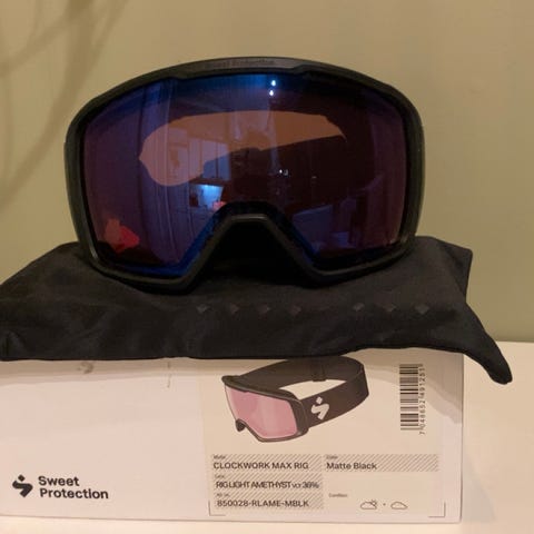 Selger en stk Sweet Protection Clockwork skibrille. Brillen er i farge sort med sort bånd, og med grønn standard sol-linse. Ikke linse med RIG teknologi. Linsen har full speileffekt. Brillen er noen sesonger gammel, men har aldri vært i bruk. Fremstår som ny.