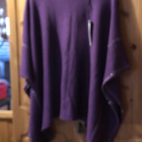 Poncho har fortsatt prislapp på. Selges 200,- pr.del. samlet 750,-
