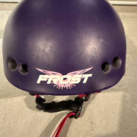 Frost V4 Escape hjelm i størrelse S (50-54 cm). Hjelmen er rosa med dekorative detaljer og har ventilasjonshull. Egnet for beskyttelse ved aktiviteter som krever hjelm.