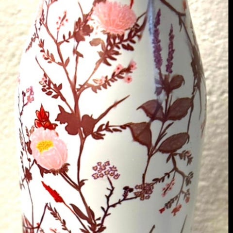 Termoflaske i metall – hvit med rødt mønster – pent brukt
