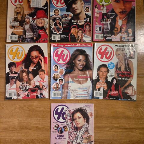 Har ryddet barnerommet - om noen er interessert så kan de få :) Har ikke sett gjennom alle bladene, men de har variert tilstand. Plakater er sannsynligvis tatt ut, noen er skrevet i, et par kanskje klippet i.