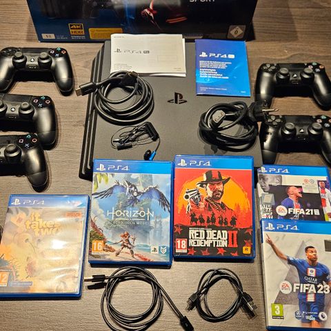 Sony Playstation 4 Pro (1TB) med 4 kontrollere og spill - nylig service
