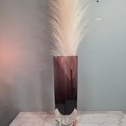 Vasen har høyde ca 25 cm, bredde ca 25 cm, dybde ca 8,5 cm og veier 1565 g.