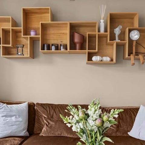 Pen hylle fra Bolia selges. Modellen heter quadro. Noen bruksmerker, men ikke synlig når den henger. Kan nok også pusses bort 😌