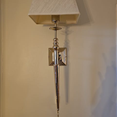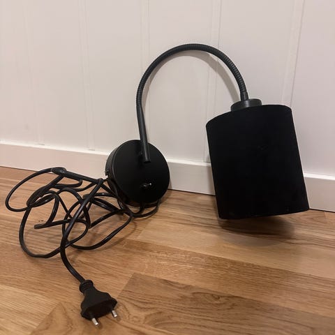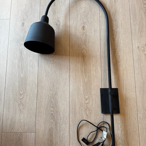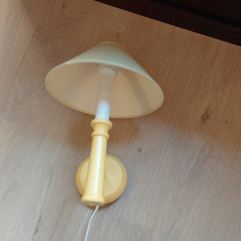 Soft vegglampe Øca10 cm på skjerm og veggfeste. Lengde fra vegg med skjerm 39cm, arm fra veggfeste til skjerm 22cm som er bevegelig.