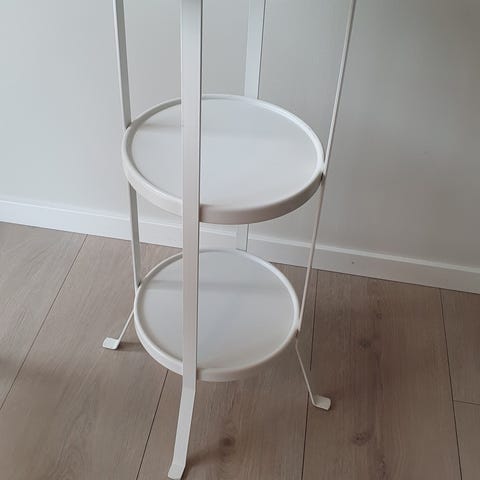 Pentbrukt. Plantestativ eller avlastningsbord laget av metall. Se bilder for detaljer og mål. Leveres demontert og vasket.
