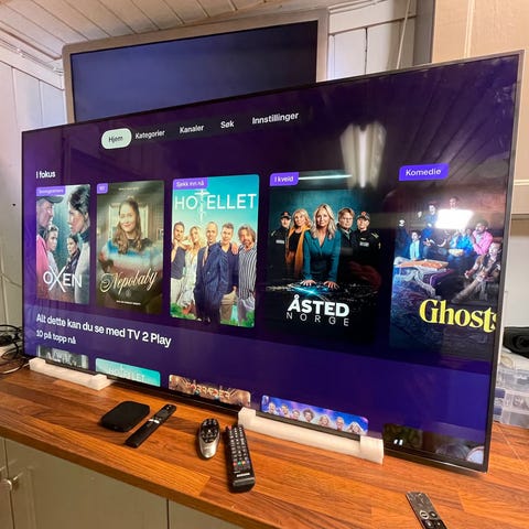 Samsung TV med tilhørende fjernkontroll. ue49mu6175uxxc