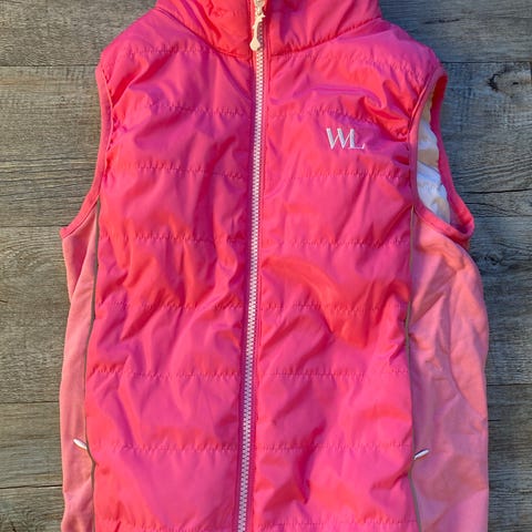 Woolland ull og dun-vest rosa som kan brukes på begge sider. Pent brukt, ren, ingen huller.